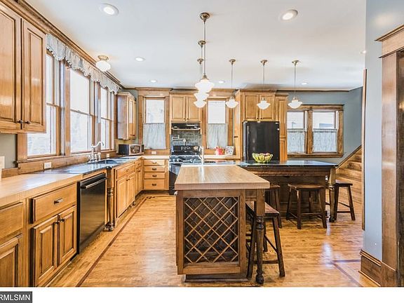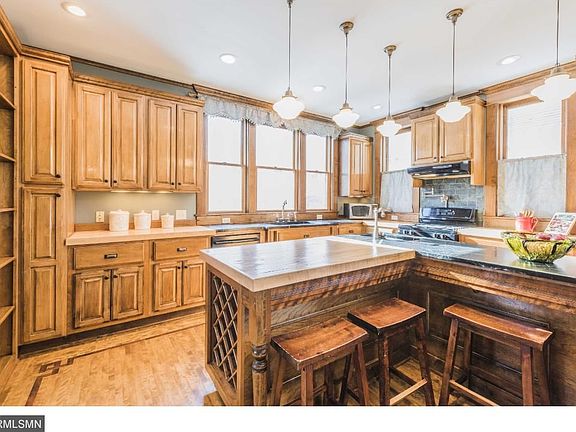 Stunning 4 BR/3 BA home just blocks from Summit Ave. Gorgeous original woodwork, built-in buffet, gourmet kitchen with granite countertops and large kitchen island. Laundry hookup in master suite and washer/dryer in basement. Finished studio above 2 car garage.
