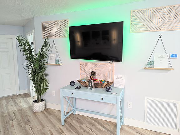 UTILITIES INCLUDED! 1st Floor, FULLY FURNISHED 2 Bedroom 2 Bathroom property has been fully renovated top to bottom. Fully stocked kitchen and linens included! Private washer and dryer inside the unit. The master bedroom hosts a queen size bed with a spa-like shower in the master bathroom. The second bedroom has a full size bed, the guest bathroom has a tub shower combo. The living room sofa also has a pull out queen size bed. Each room has a smart TV. Enjoy a kitchen full of utensils, outdoor sofa, and designated outdoor smoking area. Walking distance to the beach and boat ramps. There is only one steps to enter the property, it is about 2-3 inches high. 6 minute walk to the sand! Bring the whole family to enjoy fun in the sun at our beautiful undisturbed beaches on Hutchinson Island. Hear the sound of waves breaking from the front door. This ground level unit has been fully renovated. Just steps to the ocean, this home is close to boat ramps, parks, restaurants, ball fields, boating, surfing, fishing and many more activities for a fun beach side getaway. Access to entire house and back patio. Unit is on ground level there is one step to enter from the front or back door. The step is about two to three inches high. Hulu, Disney+, ESPN+, Prime, Peacock, Live Streaming TV Beach Toys, beach chairs Board games for the family Utilities included: electricity, water, FAST wireless internet. Fully furnished 1 month lease, can be renewed monthly. (electricity max $250)