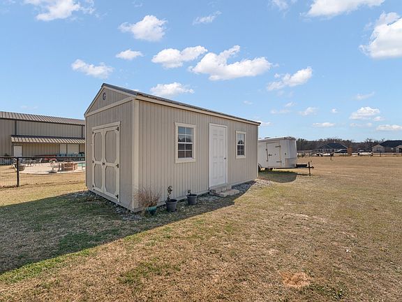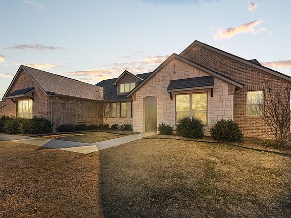 Beautifully maintained home on an acre in the sought-after Wellington Addition, offering the freedom of no HOA, a low tax rate of 1.61%, and located outside city limits. This brick and stone home has a pipe-fenced backyard and blends comfort, space, and functionality with country charm. With almost 2500 square feet you will enjoy a large open floor plan featuring beautiful flooring and a stone wood-burning fireplace as the focal point of the living area. The spacious kitchen is designed for both everyday living and entertaining, showcasing a large island with granite countertops, stunning backsplash, walk-in pantry, and ample cabinetry. Not just 1, but 2 generously sized dining rooms that provides space for gatherings and special occasions. The primary suite offers a peaceful retreat with an ensuite bath and large walk-in closets. Three secondary bedrooms provide flexibility for family or guests, along with a large dedicated office that can serve as a second living area, game room or flex space to fit your needs. Step outside to a covered back porch overlooking a backyard equipped with a chicken coop that includes chickens, a large storage shed, and established landscaping featuring vitex, blackberry, elderberry, roses, and mature peach, plum, and apple trees. Additional features include a 3-car garage, Lorex security cameras with doorbell and monitor, and a new roof (2026). This property offers privacy, space, and convenience in a prime location—an exceptional opportunity to enjoy a relaxed lifestyle with modern comforts. A great opportunity to assume the VA 2.375% interest rate