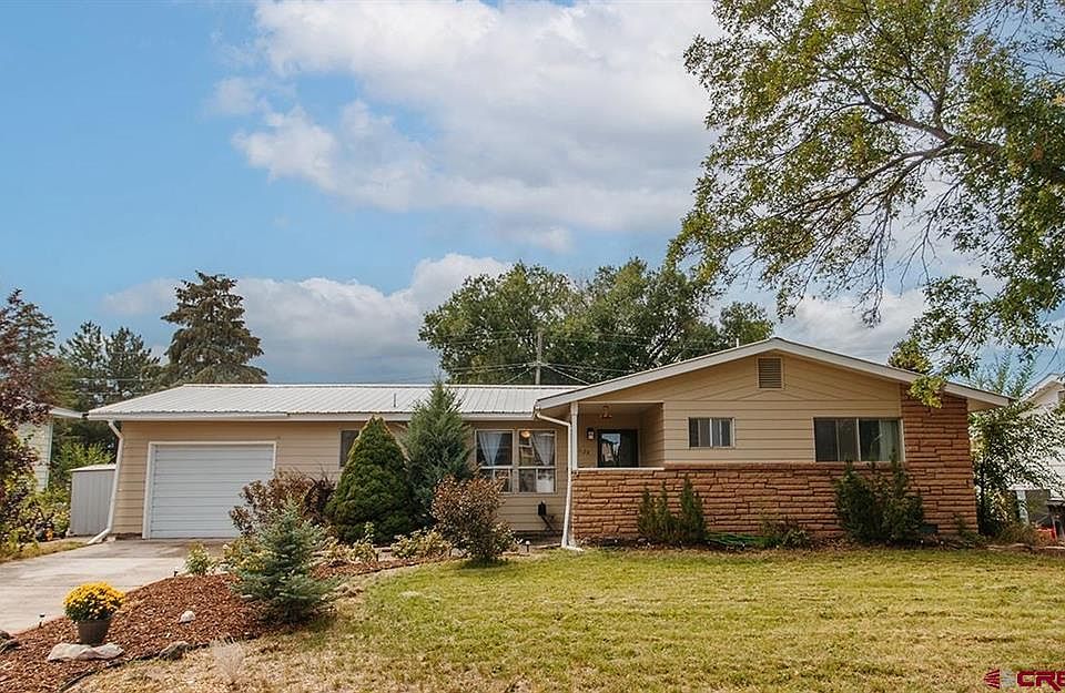 Welcome to this inviting ranch-style home set on a large lot in a central Montrose location. Step into a bright living room featuring original hardwood floors and a large south-facing window that fills the space with natural light. The dining area is equally bright, highlighted by a large picture window and ceiling fan, while the kitchen boasts updated countertops and comes complete with a range/oven, refrigerator, and dishwasher. The washer and dryer located in a large hallway closet is also included. Master bedroom with ceiling fan and updated master bathroom. Main full bath is also updated. Forced air gas heat with a brand-new furnace in 2023. A durable metal roof is also in place. Outdoors, the expansive fenced backyard with alley access offers plenty of room to relax, play, or garden, and includes a handy storage shed. Centrally located, this home is within walking distance to the Black Canyon Golf Course, schools, parks, and scenic walking. Make this well-located ranch your next home and enjoy all that Montrose has to offer!