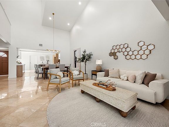 Welcome to this beautifully remodeled home in the desirable Anaheim Shores community, featuring a rare first-floor primary suite. The open layout includes a modern kitchen with a custom center island, updated bathrooms, new SPC flooring upstairs, LED lighting, and fresh interior/exterior paint. Elegant finishes include marble flooring, designer bathroom accents, and a sleek glass stair railing. Vaulted ceilings in the dining area, family room, and upstairs bedrooms add light and openness. A bonus room offers ideal space for a home office, gym, or playroom. Additional upgrades include a new HVAC system, garage door motor, and a 2-car garage. Anaheim Shores offers a private lake with walking paths, 3 pools, 3 Jacuzzis, patrolled security, well-maintained landscaping, and HOA-covered water. Conveniently located near shopping, dining, and the 5 & 91 freeways.