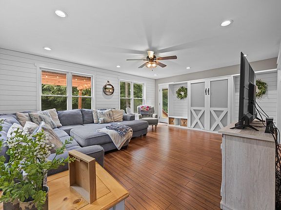 With a rare combination of land, privacy, modern finishes and convenient location, this home checks all the boxes! Home sits on secluded 10 acre lot with unlimited potential. Downstairs includes two separate living spaces with great natural light and modern touches. Spectacular views from every room. Custom built ins with Murphy Bed ideal for guests in second living/bonus space. Kitchen includes large walk in pantry, granite countertops, gas range and island. Large master bedroom includes dual walk in closets and inclusive laundry room. Enjoy the well appointed master bathroom featuring custom tile floor and shower with dual heads and clawfoot soaker tub. Upstairs are 2 additional spacious bedrooms each with their own walk in closest. Large patio with fire pit and pergola is ideal for gatherings and enjoying the privacy of the land. Outdoor shower, with hot water, is an additional unique feature of this home. Great sized outbuilding provides ample storage. Additional 100amp power service is in place to meet any outdoor needs. Small barn in place can be used for kennels or small farm animals on this unrestricted property. New roof installed in 2024, new septic pump 2024, new tankless hot water heater in 2019, new windows and siding in 2019. Listing agent is homeowner.
