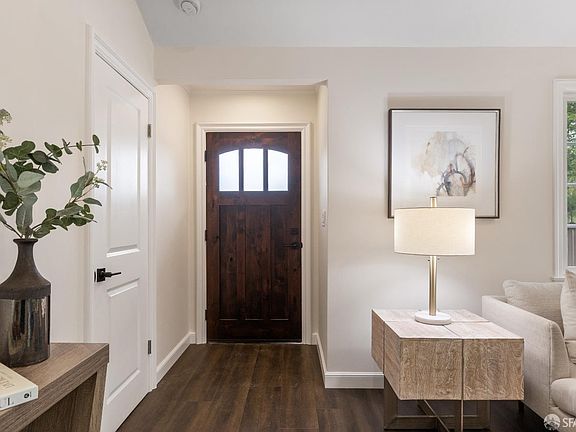 Nestled in one of San Mateo's most beloved neighborhoods, this reimagined Sunnybrae home blends timeless local architecture with elevated modern design. Just moments from downtown San Mateo's vibrant cafes, boutiques, and Central Park, the residence sits on a tranquil, tree-lined street where pride of ownership and walkability define daily life. Inside, every inch of this two-bedroom, two-bath retreat reflects thoughtful craftsmanship. The living room boasts vaulted ceilings, a cozy fireplace, and luxury vinyl plank flooring that flows seamlessly throughout the open, light-filled floor plan. A chef-inspired kitchen features quartz slab counters, custom cabinetry, and premium stainless steel appliances, creating a natural hub for gathering and entertaining. Both bathrooms have been meticulously redesigned with designer tile and high-end fixtures, while the home's major systems including new electrical, HVAC, plumbing, roof, windows, and doors deliver peace of mind and energy efficiency. The utility/laundry room and finished basement-style garage provide functionality rarely found in this area ideal for a home gym, office, or studio. The property also offers potential for an ADU, providing an opportunity for guest quarters. A turnkey offering ready to welcome its next chapter.