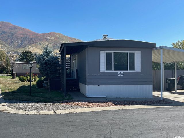 Nestled in the middle of a beautiful area in Fruit Heights this mobile home is ready for new owners. Well kept 55+ friendly park (no children or adult children) with beautiful mountain views. It's just a short walk to Cherry Hill and quick access to I-15 and HWY 89. Monthly space rent is $630. Recently remodeled Kitchen. Seller is including the fridge, oven, washer, dryer, drapes, as well as a couple mounted TV's! Dogs are allowed with restrictions. Square footage figures are provided as a courtesy estimate only and were obtained from Davis County. Buyer is advised to obtain an independent measurement.