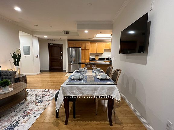 Excellent Two sperate bedroom and Two bath layout . This beautiful, quiet & private unit is location in heart Korea town. New hardwood floor, blind & refrigerator . Beautiful granite kitchen countertop and peninsula makes not only open and spacious feel but also makes own practical design. Washer & Dryer in unit. Two side by side parking.