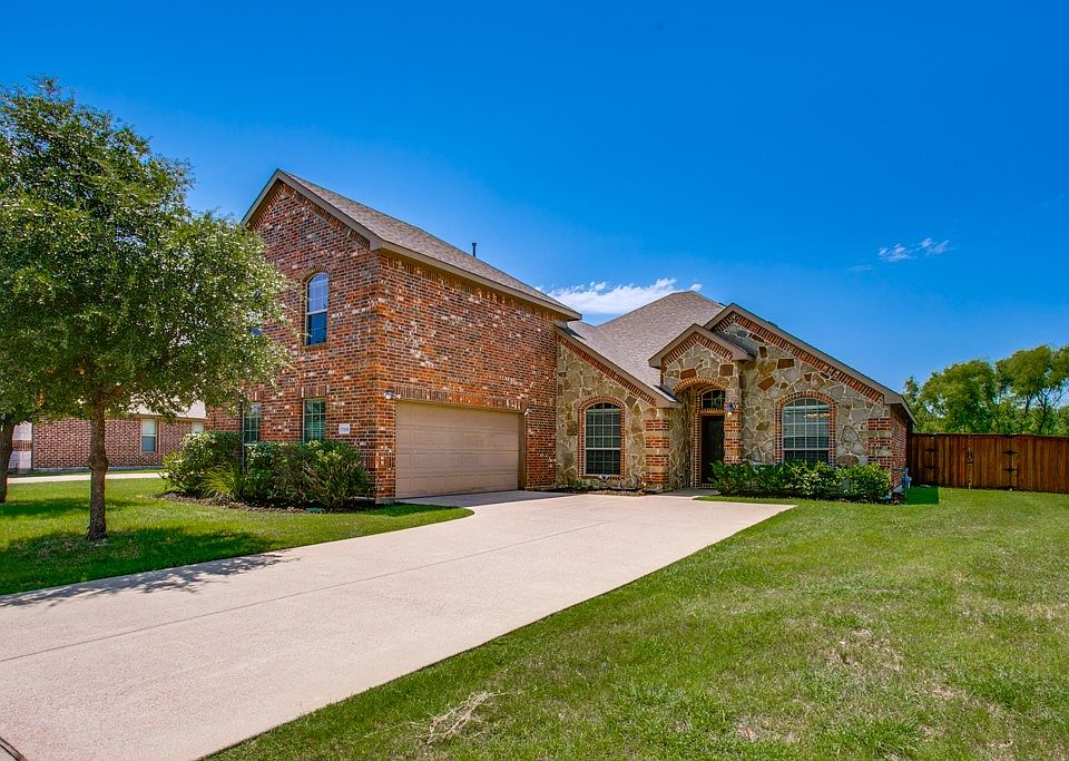 Welcome to your new pristine Forney Neighborhood! The Upgraded Brick Backsplashed kitchen is open to the living area and fireplace making it ideal for get-togethers. The back patio is extended giving extra room for seating and outdoor hosting activities. The home backs up to a green-belt with an iron fence to relax and see the greenery without bother of rear neighbors. Large side yards on each side of the fenced backyard offer great space for pets and families to play. All carpet has been upgraded for the new owners convenience as well as flooring in the dining, living and master bedroom. Enjoy the spacious master with an oversized walk-in closet and separate shower and tub as your relaxation oasis. This home has 4 bedrooms downstairs and a game room upstairs that would make a perfect man-cave, kids hideaway or very large home-office away from the noise.