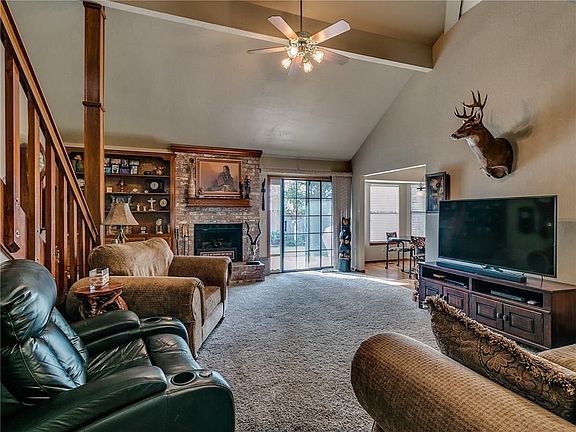 Deal Busted so this is back on the market!!!!! Pride of ownership shows in this great listing! This 4 bedroom plus a loft has plenty of room for everyone. The updated kitchen has a tumbled marble backsplash, granite looking countertops and a built-in microwave. The living area features a large fireplace w/ built-in bookcases, as well as a sliding door to the back yard. The backyard backs up to Yukon's splash pad and park. The master suite has a jetted tub, separate shower, double closets and double sinks. This house has lots of storage, as well as a storm shelter in the garage. This is a great deal for 4 bedrooms & 3 bathrooms !!!