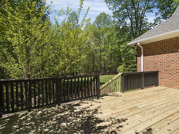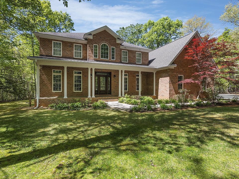 This captivating brick Traditional style home is perfectly situated on 10 acres in Efland. Just minutes from Highway 85. The interior welcomes you with a grand entryway, hardwoods throughout, an open layout, natural light and stylish fixtures, neutral decor, and remarkable ceilings. The roomy, recently updated kitchen is full of natural light, premium appliances, granite counters, and convenient double island with wine fridge. The restful main-floor primary bedroom includes a walk-in closet and a private bath with a separate claw-foot tub and digital display shower. The other three bedrooms, distributed on multi-levels for privacy, are ensuite and ready for your decorative touch. Attached three-car garage. The circular driveway means no backing up. Exteriors include newly replaced deck boards and stair rails that descend down to a brick patio and fire pit. A breezy front porch makes for the perfect setting to enjoy the abundance of nature around this home. Come experience for yourself!