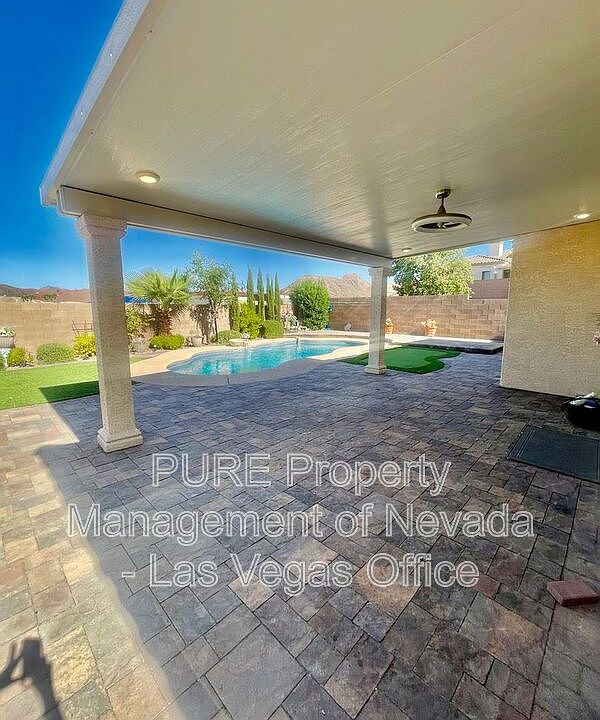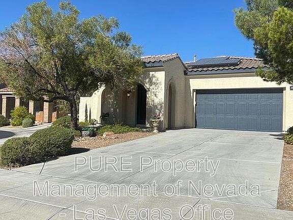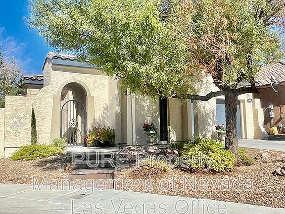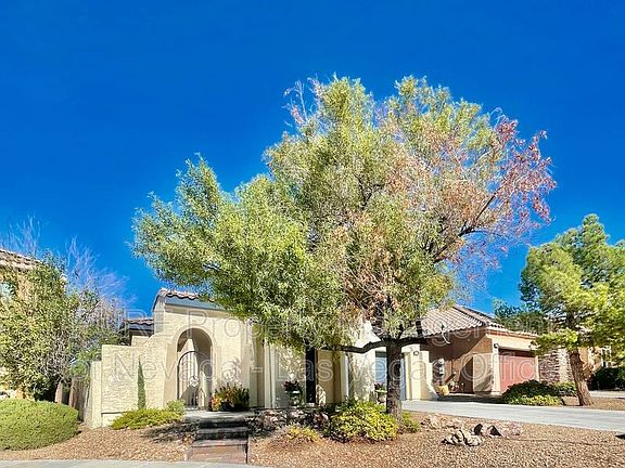 This gorgeous custom one story home in the Tuscany division in Henderson is guard gated and features a large backyard with a pool and mini putting green & large covered patio. Customized cabinetry throughout the entire home with fireplace in the living room. This home features Solar Panels