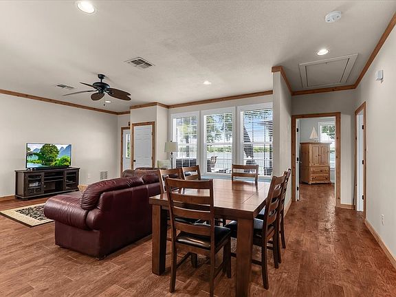 Floating platform dockCovered dockLake front livingPlenty of cabinetsGranite countersBeautiful views of waterExtra storage or workshop