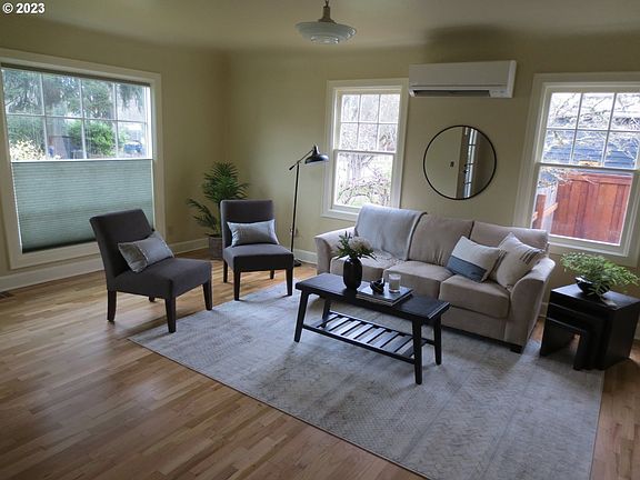 Lovely vintage home tastefully updated, features spacious living areas, hardwood floors, main-level living and primary bedroom, newer kitchen remodel and appliances, family room/office could be third bedroom, upper bedroom with walk-in closet, covered front porch, new interior paint and ductless heating, bonus 504 sq. ft. unfinished basement, detached shop and sauna, and large fenced backyard with room for gardening.