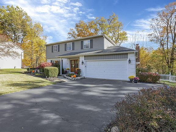 Welcome home to this impeccable 2-story home situated on an oversized homesite with ALMOST an 1/2 Acre backing up to Huntington Hills Park, over 2 miles of wooded walking trails! Over 2543 SQFT of Living Space, including the Partially Finished Basement with 4 Bedrooms & 2.5 Bathrooms! It ALL starts from the perfect curb appeal! As you enter the home, you will find a formal living area alongside the lovely dining room! You will enter the beautiful kitchen with luxury flooring, designer granite countertops & backsplash, high-end LG appliances, white cabinetry, trendy lighting & more! Open to the breakfast area with a bay window & beautiful views of the backyard. Relax in the spacious family room with a cozy fireplace, custom mantle, plush carpet, & neutral paint decor! Upstairs, you will find the oversized primary suite with its own private bathroom, walk-in closet, large vanity & private shower. The additional 3 cozy bedrooms are amazing as well. 2nd Floor Laundry area & updated hall bathroom with granite counters, designer lighting & a window for added natural light! The partially finished basement will be great for entertaining, relaxing, or even an extra bedroom/rec area! Tons of storage space leading to the walk-out area to the backyard with a huge deck, lower level patio, spacious backyard with firepit area, fence & woods!