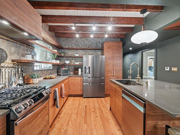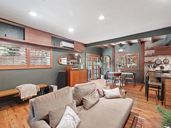 Conveniently between picturesque mountain towns, scenic parks, and the bustling hub of Silicon Valley, this 117-year-old home marries historic charm with modern elegance. Its design boasts a kitchen with a stone backsplash and an island breakfast bar that blends into the living space with beamed ceilings. Further enhancing its unique character are the hardwood floors and meticulous woodwork in the dining and living rooms. The top-floor primary bedroom offers a separate lounge for those tranquil moments. The property presents an array of entertaining spaces: a deck, a mystical fairy ring, French doors leading out from the dining room, and a sheltered area under the carport. A dedicated sink area on the deck ensures effortless clean-ups. Enjoy air conditioning on those hot summer days. Ensuring utmost privacy, this home features towering fences and verdant trees. The spacious, sunlit lot is a gardener's dream, providing fertile ground for thriving gardenstruly a rare gem in Brookdale.