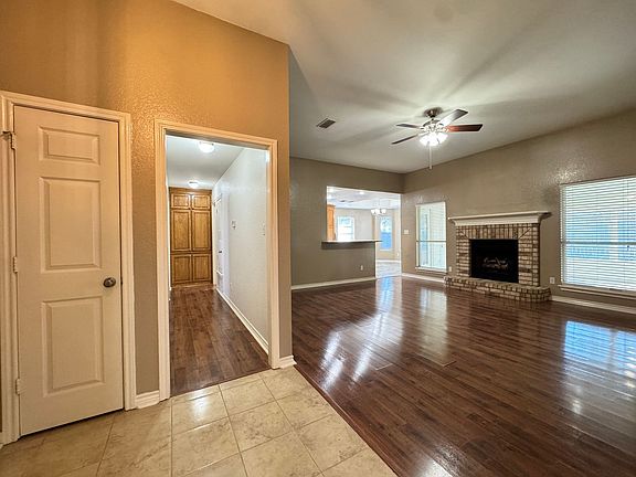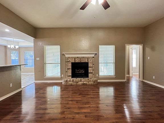 Cozy brick fireplaceTons of natural lightInviting living spaceStainless steel appliancesGranite countertopsTwo spacious walk-in closetsFully fenced backyard