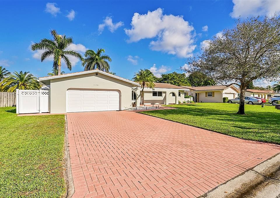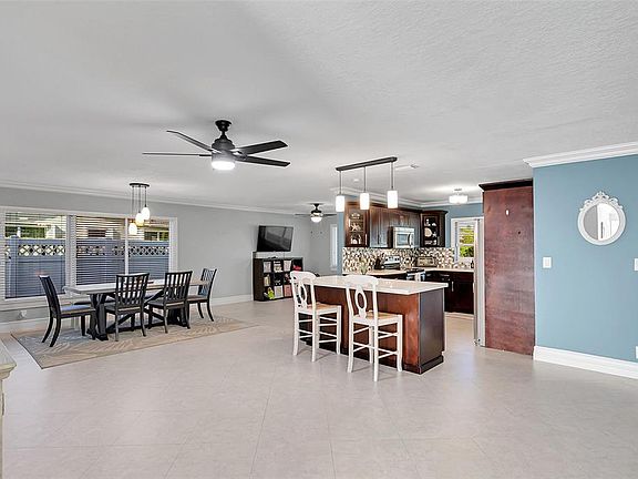 This charming 4 bed, 2 bathroom SFH offers modern comfort and style. The flex room off the family room is perfect for a remote office. There is a 2-car garage with epoxy flooring and laundry facilities. All Impact windows and doors provide peace of mind. The recently remodeled bathroom and California closet in the master suite add luxury. The home has been freshly painted inside and out. Upgrades include a newer A/C (2021). The tile roof, water heater, and brick paver driveway/patio was all installed in 2016. The backyard is a private oasis with a large fenced-in area, retractable awning, and a beautiful canal view. The kitchen is equipped with updated appliances (2017), quartz counters, and brown cabinetry. The home has neutral tile in main areas with laminate flooring in the bedrooms.