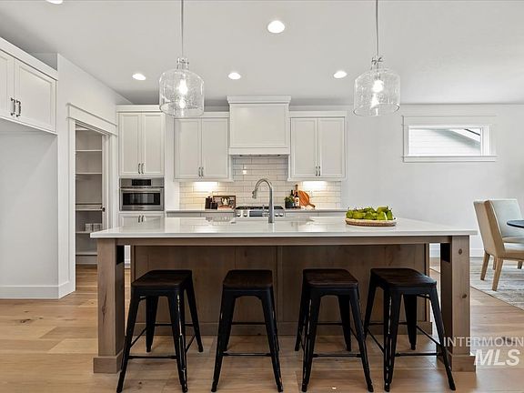 The Elmwood by Berkeley Building Co. features lofty ceiling heights in the Great Room, which is the focal point of this open-concept home. Light, bright and airy, choose from one of our Curated by Berkeley collections to create your vision. Bosch stainless steel appliances, quartz countertops in kitchen, primary, and main level bathrooms. Tile backsplashes, beautiful engineered hardwoods, tile flooring, and designer lighting adorn this impeccable dwelling. The Primary Suite is on the main level, as well as a secondary bedroom & bathroom. Upstairs you’ll find a large open Bonus room and one additional bedroom & bathroom. Located in the tranquil Hope Springs Community nestled in Star, ID! Ask Mike or Adrienne for more information! Come see us @ 11387 W Helenium Dr Saturday 12:00 - 4:00 for more info.
