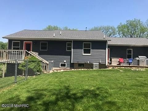 This house has everything you could ask for in the Thornapple Kellogg District including Natural Gas! Located perfectly on 2 quiet acres just outside village taxes but located only minutes from the school for a easy commute with children.Step inside to take in the farmhouse modern style with barn wood accent walls, the custom built in's located in the mudroom just off the garage with a study area tucked away, real barn wood custom stairs, a open floor plan for entertaining, a main floor master suit with large walk in closet, & laundry chute.The lower level is a finished walk out basement with 2 additional bedroom & large family room. Take a tour outside to enjoy the large landscaped back yard, fire pit with fenced in yard & lets not forget the POLE BARN or 2 stall attached garage for toys!