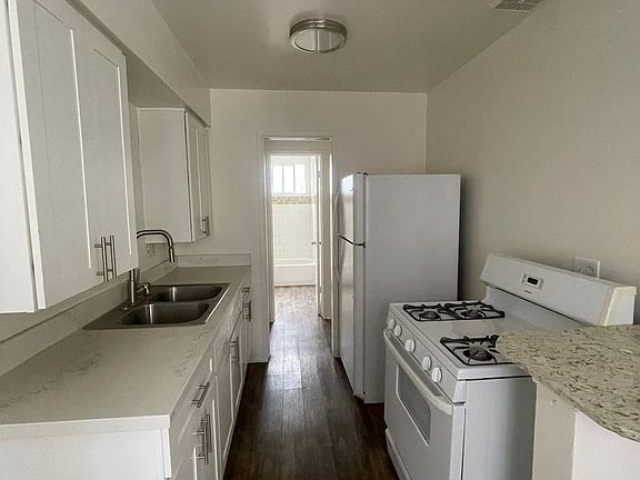 LOWER 1 BEDROOM / BATH APARTMENT THAT INCLUDES FRESH CUSTOM PAINT, VINYL PLANK FLOORING, NEW BLINDS, SHAKER CABINETS, QUARTZ COUNTERTOPS, STOVE, OVEN, REFRIGERATOR, TILE BATH/TUB ENCLOSURE.