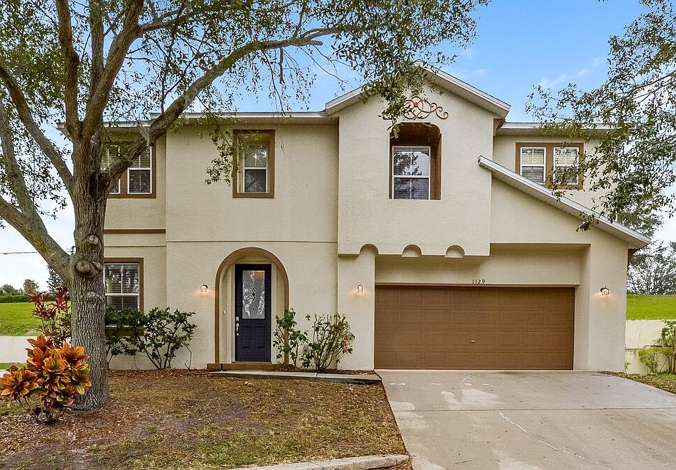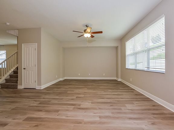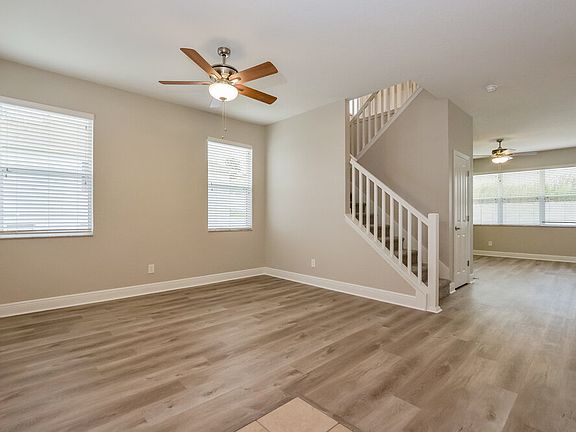 Fall in love with this Clermont rental home that has an impressive 2,583 square feet of space that holds three bedrooms and two and a half baths. Step into the dining room with its picture window and attractive ceiling fan/light fixture, and move on to the open plan living room, kitchen, and breakfast nook, whose door opens to the fenced yard. Lit by recessed ceiling lights, the kitchen has an island, double sink, stainless steel appliances, and a spacious pantry. It opens to the two-car garage, so convenient after a trip to the supermarket. Upstairs, the main bedroom sports a two-sink vanity, a walk-in, enclosed shower, and a soaking tub with an attractive tile surround. Schedule a tour of this rental home today.
