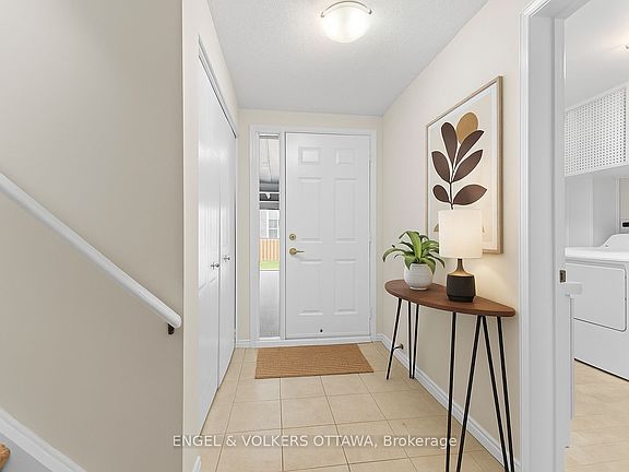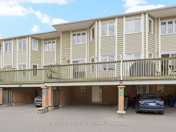 Functionality meets charm in this bright, thoughtfully designed 3-bedroom, 2-bathroom townhome, offering comfortable multi-level living in a convenient, family-friendly location. The main level begins with a flexible living space that can serve as a home office, fitness zone, or guest lounge, complete with track lighting and a large closet for extra storage. A full 3-piece bathroom with a glass shower and a convenient laundry area is also found on this floor, adding to the home's day-to-day practicality. Upstairs, the second level offers a warm and inviting living room centered around a statement brick fireplace, flanked by built-in shelving. Large sliding glass doors open directly to a private backyard with a stone patio and green space - ideal for summer lounging, dining, or gardening with minimal upkeep. The kitchen features clean white cabinetry, matching appliances, and a breakfast bar that overlooks the cozy dining nook. From here, step out to a spacious front-facing balcony, large enough to host an outdoor dining set or café-style seating - perfect for morning coffee or evening drinks. The third level houses all three bedrooms, making it easy to separate living and sleeping areas. The primary bedroom includes hardwood flooring, two large closets, and a large window that fills the space with sunlight. Its updated ensuite bathroom features a modern vanity and a sleek tub/shower combo with matching tile surround. Two additional bedrooms, also finished with hardwood floors, are ideal for children and guests. Quick access to the 417 and Aviation Parkway ensures a smooth commute to downtown or surrounding areas, and all your essential amenities - including shops, groceries, and services - are just minutes away. For those seeking easy living, flexible space, and excellent value in a connected neighbourhood, this townhome offers the perfect balance of comfort and convenience.