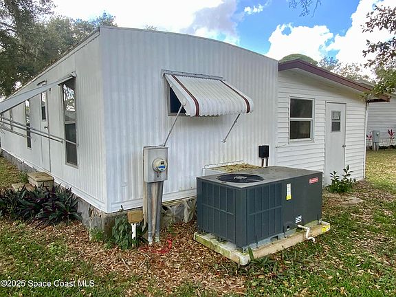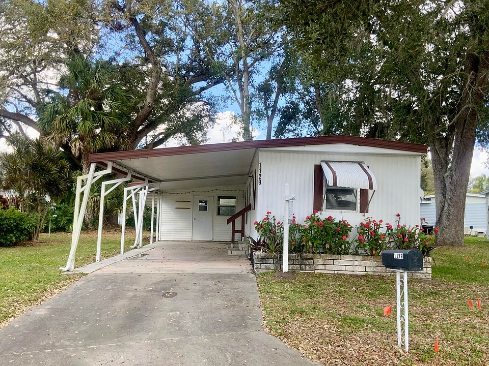 AFFORDABLE LIVING FOR A SNOWBIRD RETREAT OR FOR A RETIREE LOOKING FOR A SMALLER HOME! This 2 Bedroom 1 Bath 12' singlewide is located in the very active 55+ gated & deed restricted Holiday Park community within about 20 mins from beautiful Florida beaches. The home has had recent updates including bathroom improvements, subfloors replaced, laminate flooring installed, roof re-sealed & a new HVAC system installed. There is also an oversized shed that houses the washer, dryer & laundry sink, as well as workshop area & storage.