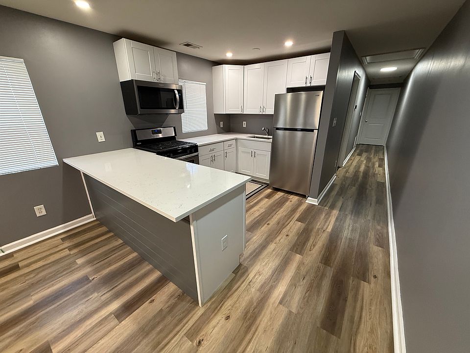 Newly renovated 2 bed 1 bath apartment in West Deptford NJ New LVP flooring throughout, new cabinets, quartz countertops, lighting fixtures, updated appliances, and fresh paint throughout. Plenty of off street parking with units own driveway. Large backyard with a shed. Large attic for storage. First month and security deposit is due upon signing. 12 month lease. Credit/background check required with application. Owner pays for sewer. Tenant pays for electric, gas and water. - no smoking - must make 3x the monthly rent to qualify - must have a 600 plus credit score to qualify - 1 year lease - tenant pays for gas, electric and water - landlord pays for sewer - no smoking - $250 deposit for pets and $25 monthly fee