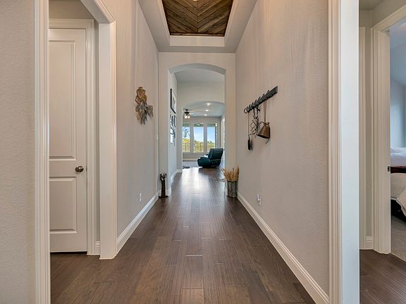 Built by Highland Homes, this stunning one-story plan offers modern living with a fully turf backyard! Large windows in the family room, study, and breakfast nook fill the home with natural light. The open kitchen overlooks the spacious family room, with a separate formal dining room perfect for entertaining. The oversized private primary suite features a custom accent wall and an expansive walk-in closet. Two secondary bedrooms are located at the front of the home and share a full bath with double vanity sinks. A large office provides flexibility as a fourth bedroom or playroom if needed. Enjoy outdoor living with a turf backyard for easy maintenance and an extended covered patio for extra entertaining space. The oversized 3-car tandem garage offers additional storage. Located within the highly rated Northwest ISD schools, this home combines comfort, style, and convenience in one perfect package.