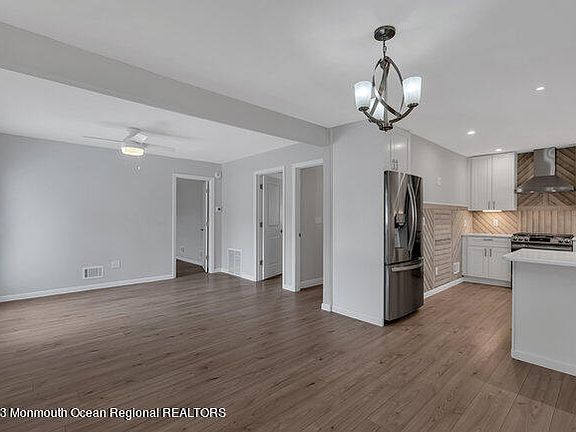 Fresh as summer is this pristine 2 BR, 2 BA ranch style home in Manasquan Shores section of Wall. This updated house is spic and span inside and out and is move in ready.... just unpack. Quiet location, in close proximity to Orchard Park, the town of Manasquan, and the beach. Enjoy the open floor plan & primary suite, then entertain and relax on the backyard patio and gazebo/covered cook-out/bar area. Also has a spotless basement great for storage, an outside shower, and a detached garage with electricity.