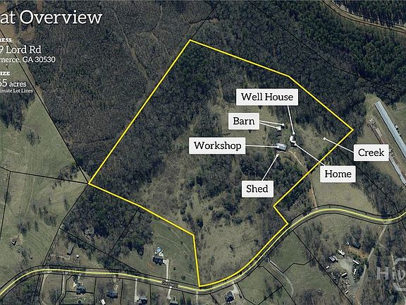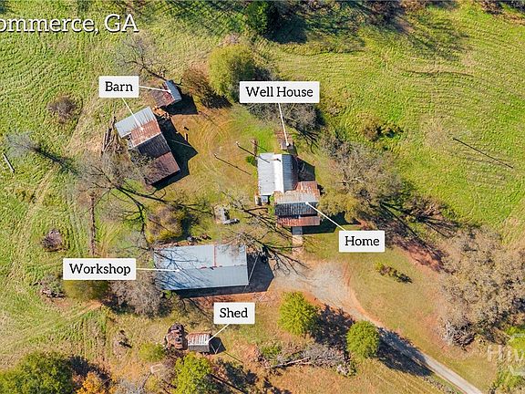 Bring your vision and make this remarkable property your own! Situated on 41.65 acres just outside Commerce, this farm features a 2,323 sq ft home ready for renovation, a 52x32 shop building, 30x60 barn, 6x20 shed, and an additional storage structure. The land is a beautiful mix of open pasture, hardwoods, and mature Poplar, Black Walnut, Pecan, and Oak trees. You'll also find muscadines, a large scuppernong vineyard, and a peaceful creek that winds through the property. Granite-top picnic tables make the perfect spot for outdoor gatherings and cookouts. With established infrastructure, natural beauty, and usable acreage, this property offers endless opportunities for farming, livestock, or creating your dream homestead-all just minutes from I-85 and downtown Commerce.