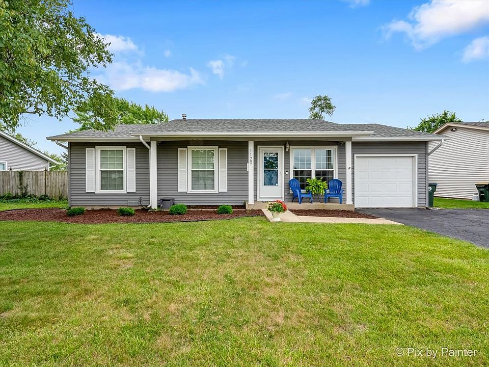 WELCOME HOME to this beautifully remodeled 3-bedroom, 1.5-bath ranch, tastefully redesigned in 2018 to embrace an inviting open concept with a spacious 10 foot kitchen island perfect for gatherings. No detail missed, featuring new flooring, modern lighting, sleek kitchen cabinets, stainless steel appliances, and updated bathrooms. Natural light fills every corner through new windows! The home boasts a newer roof installed in 2017, along with updated siding, soffit, facia, and new gutters within the last 10 years, ensuring both style and durability. Outside, a large fenced in yard with a new concrete patio, a private oasis for outdoor entertaining and relaxation. Maintenance free shed to store all your yard equipment. Oversized one car attached HEATED garage with a two-car driveway, making parking hassle-free. Additional storage located in the garage accessed by easy to use pull down attic stairs! Located in the highly rated Mead and Conant school boundaries! Enjoy the prime location close to busse woods, shopping, restaurants, and easy access to the tollway, enhancing both lifestyle and commute.