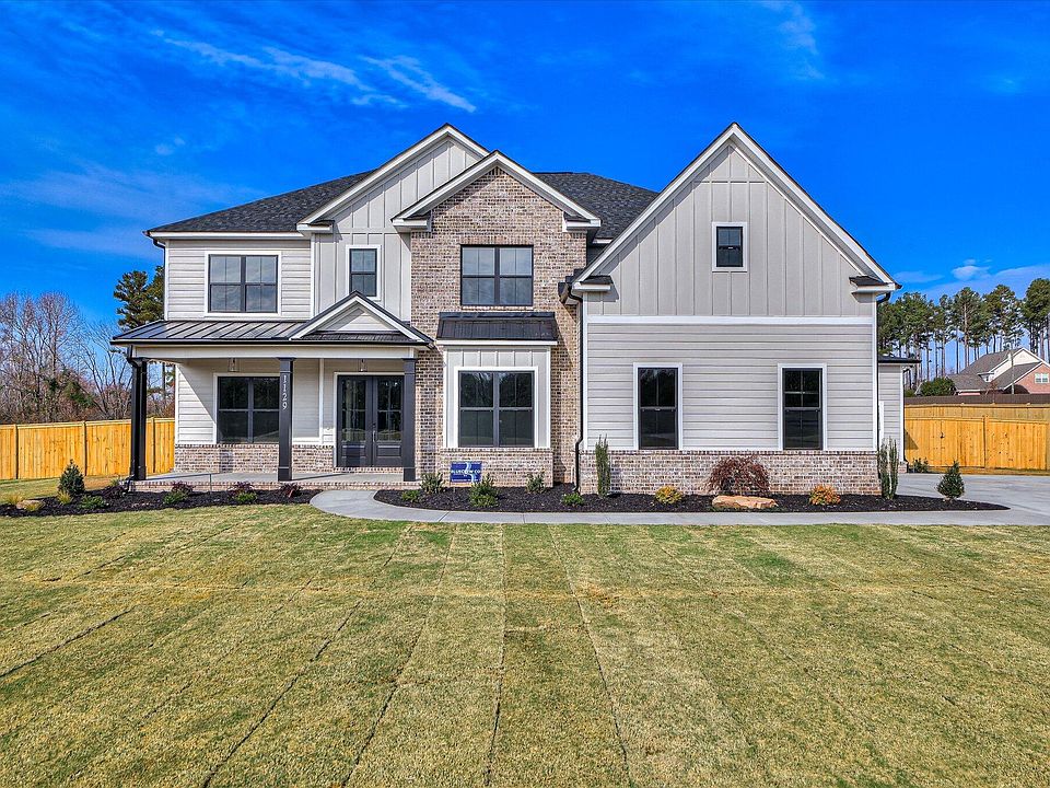 Spacious and thoughtfully designed, this 5-bedroom, 4-bath home offers over 3,900 square feet of comfortable living space. The first floor features a bright and open great room, a designer kitchen with a large island, a breakfast room, and formal living and dining rooms—perfect for entertaining. A guest suite with a full bath is also conveniently located on the main level. Upstairs, the luxurious primary suite includes dual walk-in closets and a spa-like bath. A large flex room, laundry room, and three additional bedrooms round out the second floor. Enjoy outdoor living on the rear porch and the charm of the front porch. This plan combines style, space, and function for modern living.