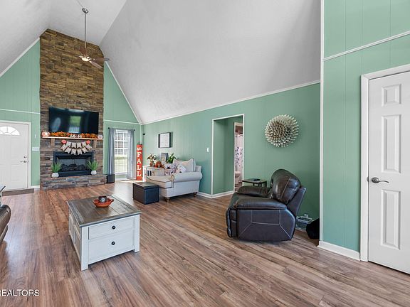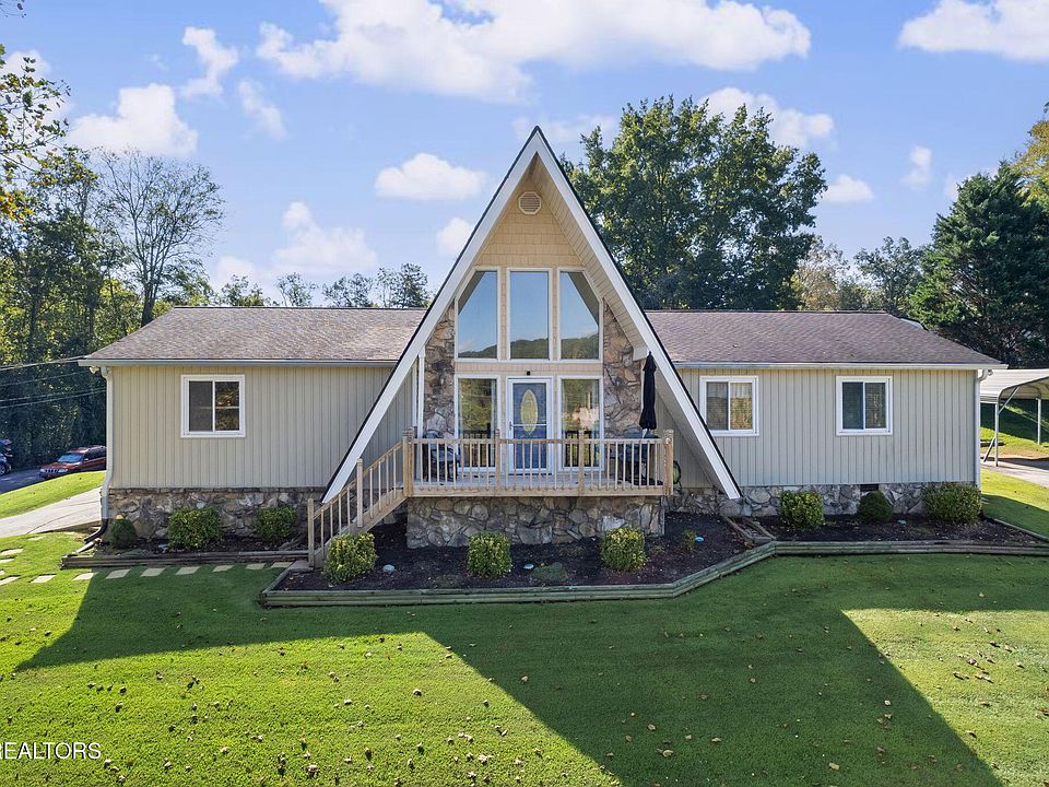 Enjoy breathtaking ridge line views year-round and seasonal views of the Clinch River right from your home. The open design highlights the A-frame architecture while creating a warm and inviting atmosphere. A spacious 2-car garage provides convenience, while an additional storage building offers extra room for tools and equipment.