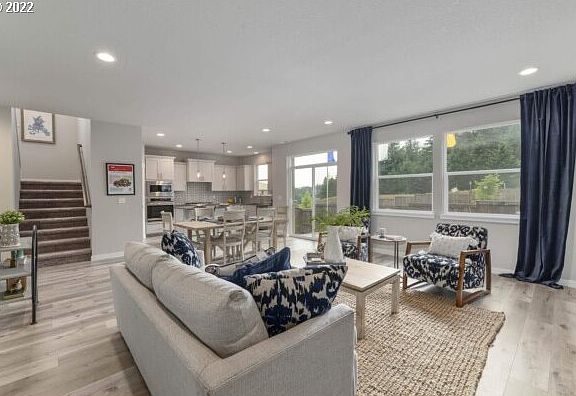 WELCOME TO FARADAY HILLS! GPS FOR SITE LOCATION: 32840 SE DUUS RD. ESTACADA MODELS OPEN DAILY 11-5 The 2366 is a traditional 2-story home with 4 BEDROOMS, A BONUS W/WALK-IN & 3 FULL BATHS. The MAIN FLOOR BEDROOM w/bathroom can serve as a GUEST SUITE/5TH BEDROOM or office. The combination great room & dining area includes a sliding door granting easy access to the outdoors. Photos of model