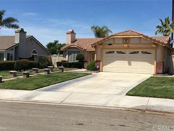 Beautiful single story 4 bedroom home in a great neighborhood. Built in 1991, home has 2 full baths, a swimming pool, and a covered patio. A great way to enjoy the summer. Vaulted ceilings, skylight, hardwood floors, fireplace, large backyard and a 2 car garage with direct access. Centrally located near the 60, 91 and 215 freeways. Perfect family home.