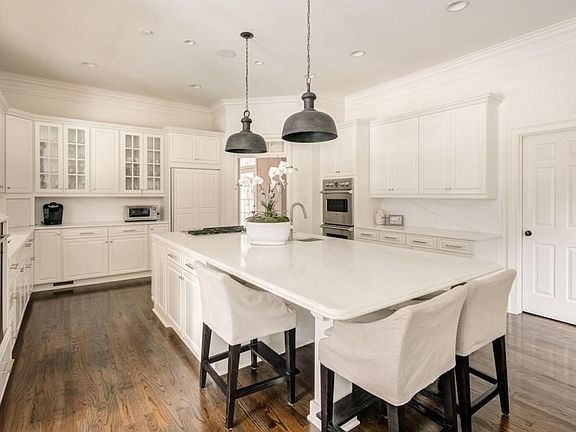 Experience perfection in East Cobb's prestigious Tiffany Park with this immaculately maintained transitional designed home, tucked away on a cul-de-sac with a private backyard retreat with a heated saltwater pool, cascading waterfall and outdoor grilling area. This exquisite home, once featured in Atlanta Magazine, offers timeless design and casual elegance throughout with more than 7,500 finished square feet and high-end craftsmanship. As you enter through the front door, you are greeted with a beautifully appointed office with fireplace, large dining room with intricate moldings and a spacious two-story foyer with sight line views to the grand living room with fireplace and a two-story wall of windows, custom built-in's and gorgeous finishes. From the living room, the open floorplan flows seamlessly to the chef's kitchen with oversized island, top of the line appliances and an adjacent sun-filled sitting room and enclosed porch. The rooms offer the ideal spaces for year-round relaxation, with main level walkout to the pool - a perfect blend for casual living and large gatherings. Warm hardwoods flow seamlessly throughout in all rooms on the main and second levels. This home offers five en suite spacious bedrooms, each with its own private bath and walk-in closet, including the oversized owner's suite on the main level. The owner's bath is equally impressive with Carrara marble finishes and its spa-inspired shower, expansive vanities with new custom cabinetry, spa tub, oversized shower and large walk-in closet with custom closet system. Two powder rooms, mudroom and oversized laundry room with cabinetry complete the main level. Enjoy all the terrace level has to offer with more than 2,000 square feet of finished space including a beautifully finished stone bar area, pool/activity room, large family theater space and a bedroom with full bath. This is an exceptional opportunity in a prime, close-in location in the award-winning Mount Bethel/Dickerson/Walton school district; steps away from the Chattahoochee River National Recreation Area with miles of scenic trails and nearby area conveniences and more. This stunning home offers the perfect balance of luxury, convenience and timeless beauty.