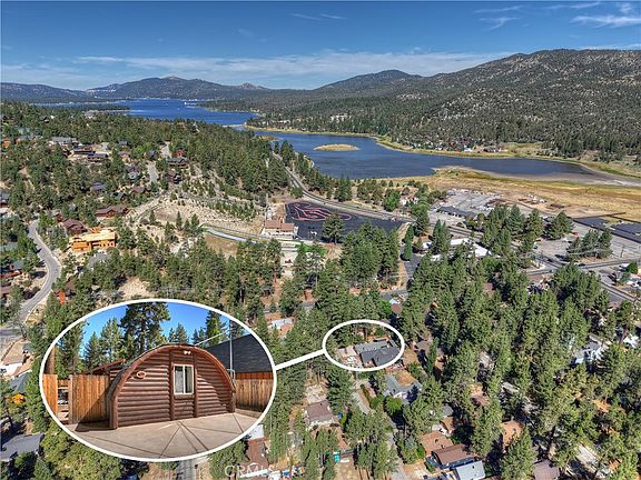 Rustic elegance meets modern comfort at this distinctive quonset retreat in Big Bear City ~ Step into mountain living reimagined with this exquisite 2-bedroom, 2-bath Quonset home ~ A rare architectural gem wrapped in rich log siding and meticulously maintained inside and out ~ Designed for both style and comfort, this residence offers a seamless blend of rustic charm and refined finishes, making it an ideal full-time haven, weekend escape, or premium short-term rental ~ The light-filled open floor plan showcases soaring tongue-and-groove ceilings, creating a warm yet airy ambiance ~ The gourmet kitchen is a showpiece with handcrafted custom cabinetry, sleek Corian countertops, and thoughtful design details that make both everyday living and entertaining a pleasure ~ Luxurious heated floors in the bathrooms add a touch of spa-like indulgence, perfect after a day on the slopes ~ Enjoy the outdoors year-round with a welcoming private front porch, a sheltered back porch for relaxed gatherings, and a generous double shed for all your mountain gear ~ Ample parking—including a carport—ensures effortless convenience ~ Set in a prime location, you’re just a short stroll to Snow Play and Oktoberfest festivities, and a quick 5-minute drive to the lake, scenic hiking trails, world-class ski slopes, and vibrant dining ~ Here, every day feels like a getaway.