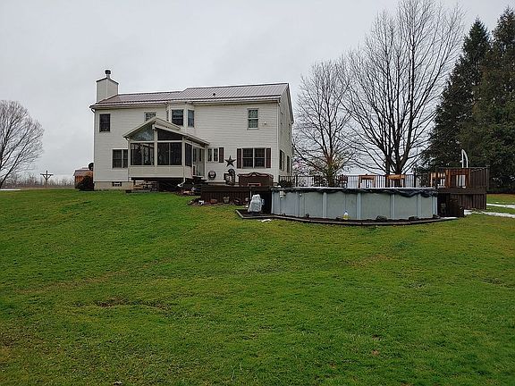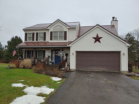 Warm and inviting custom built home nestled on 1.4 acre lot on quiet country road. Stunning entryway with bonus room / office and half bath leads to open kitchen and living area. Enjoy family gatherings in the formal dinning room and country kitchen with large pantry. Cozy living room features gas fireplace which can be converted to wood. First floor laundry is off the 2 car garage. The staircase leads to 4 bedrooms. The master bedroom features a large walk in closet and en suite master bath with soaking garden tub and shower. Three more bedrooms, additional full bath, and large linen closet complete the upstairs layout. A full dry basement with plenty of storage and partitioned areas with easy to maintain water system. In the warm weather take advantage of central air while enjoying beautifully landscaped gardens. A 3 season sunroom leads to a large deck surrounding a 24 foot above ground pool. Enjoy fishing on Spruce Lake in the paddle boat (included), or watching bird and wildlife. Also included is an Invisible electric fence with 2 transmitters for your furry friends. Have piece of mid with hard wired security system through Guardian Protection Services (subscription required) and dual fire alert systems. Appliances to remain with home: stove , refrigerator, dishwasher, washer and dryer. A 75 ft blacktop driveway with a turn around which accesses a 12 x 22 Amish built shed with amazing storage. Appointments and showings with 24 hour notice and PRE APPROVAL letter is required. Reasonable offers will be considered. Contact owner at 716-410-1312 or Secforce319@gmail.com COVID RESTRICTIONS WILL BE IN PLACE. MASK REQUIRED. ONLY 2 PERSONS IN HOME AT ONE TIME. Thank you for looking!