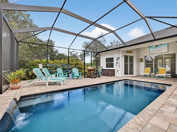 Center islandAbundance of natural lightBreakfast barCasual dining nookScreened heated saltwater poolWaterfall featureCustom wall accent
