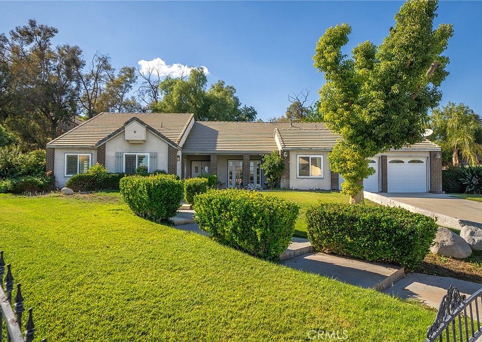 Welcome to 11292 Cadbury Drive, a spacious single-story retreat nestled in one of Riverside’s most desirable neighborhoods. This beautiful home features 5 bedrooms, 2.5 bathrooms, and approximately 2,810 square feet of living space, all situated on an expansive 24,394-square-foot lot that offers endless potential. From the moment you arrive, the charming brick-accented exterior, manicured landscaping, and inviting entryway set the tone for what awaits inside. Step through the double doors into a bright and airy living space highlighted by vaulted ceilings and natural light that fills every corner. The open floor plan flows seamlessly from the formal living and dining areas to the spacious kitchen, which features white cabinetry, granite countertops, and a center island with built-in wine storage—perfect for both everyday living and entertaining. Adjacent to the kitchen, the cozy family room with a fireplace creates a warm and comfortable atmosphere ideal for gatherings with loved ones. The primary suite serves as a peaceful retreat with its own fireplace, private patio access, and a large ensuite bathroom complete with dual sinks, a soaking tub, a separate shower, and a generous walk-in closet. The additional bedrooms are well-sized, offering versatility for guests, a home office, or a gym, while the bonus room provides even more flexibility for a game room, home studio, or lounge area. There house sits on a single level with an exception to the oversized loft that provides as a flex space. Step outside to your private backyard oasis with a wide concrete patio and lush green lawn framed by mature trees—perfect for entertaining, relaxing, or creating your dream outdoor space. The oversized lot offers plenty of room for a pool, garden, or future expansion. Additional highlights include an indoor laundry room with storage, a two-car garage, ample driveway parking, and a quiet cul-de-sac location that provides both privacy and convenience. Ideally situated near schools, parks, shopping, and freeway access, this home perfectly balances comfort, function, and opportunity. 11292 Cadbury Drive isn’t just a home—it’s a place to create lasting memories, enjoy peaceful living, and make your vision of homeownership a reality.