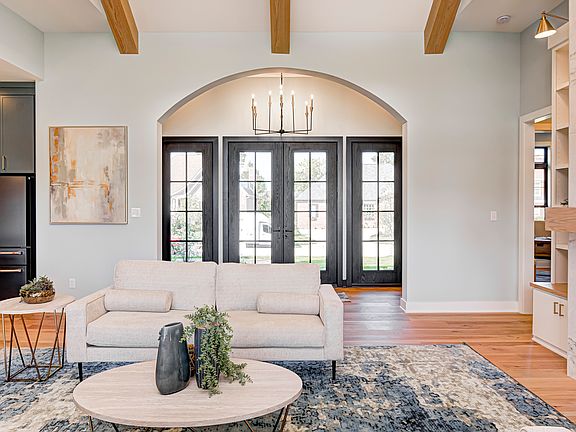 Woodstock Custom Homes offering this impressive new 3000SF ranch with full basement and 4 car garage perfectly situated on a beautiful waterfront lot with pond and golf course views. Open floor plan with wood beamed cathedral ceiling. Designer touches everywhere including the double tray ceiling in the primary bedroom. Office could be 4th main level bedroom. Dining room opens to 19x12 rear covered porch with fireplace, exposed aggregate patio, and views of the pond and golf course. Plenty of room for a pool. Lower-level features bar area that opens to entertainment room, exercise room, two bedrooms, full bath, and half bath. In addition, there is over 1100 SF of storage space. This is a one-of-a-kind property. Turf areas are irrigated. Tankless gas water heater and zoned heating and cooling.