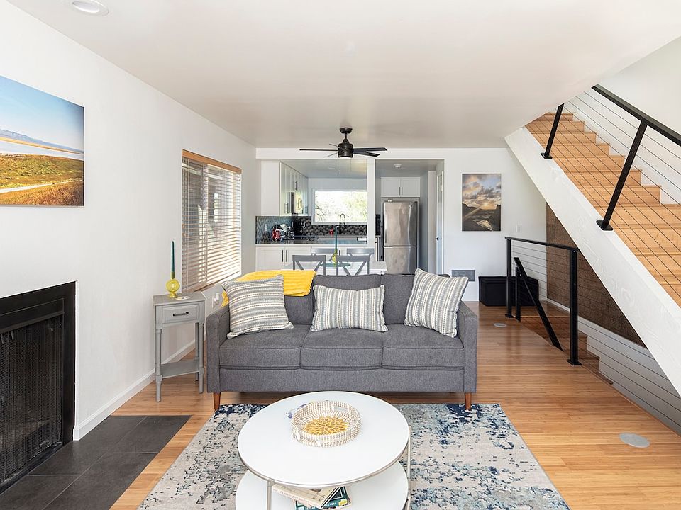 Settle into our 2-bedroom, 1.5 bathroom retreat, thoughtfully designed with your comfort and convenience in mind. Each bedroom is a haven of tranquility, with views of Bishops Peak and Laguna Lake Golf Course. The primary bedroom features a queen bed, walk-in closet, and dedicated workstation for those who need to stay connected to work or school during their getaway. A secondary bedroom boasts a large closet and a double bed. Downstairs you will find an open concept living area bathed in soft, natural light and perfect for relaxation or work. Watch golfers tee off from the dining area, or enjoy views of the mountains from the kitchen while you prepare a home cooked meal using new appliances. An extra bonus space with a foosball table, comfortable couch, and TV provide a perfect setting for the family to enjoy a quiet evening. For your convenience, a connected garage provide an in-unit washer and dryer ensuring your stay is as comfortable as possible.