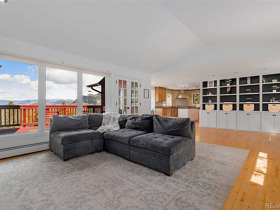 Your turnkey mountain home awaits in this completely private gem with unobstructed views of the Front Range and beyond! This 2+ acre property is completely usable and surrounded by peaceful pines and aspens, along with striking views of Mt. Evans, Rosalie, Black Mountain - and more. The land also looks over Staunton State Park and Mt. Evans Wilderness, and bonus - you won’t see another home in your view! Step inside to find an incredible open layout perfectly designed for entertaining and comfortable living. Be prepared to be wowed with sweeping mountain views, an abundance of natural light from many oversized windows, vaulted ceilings, stunning wide-plank pine hardwood floors, beautiful built-ins, and freshly painted crisp white walls with black accents throughout. The gourmet kitchen is sure to impress home chefs boasting ample warm wood cabinetry, high-end stainless steel appliances, including a Wolf range, paneled Sub-Zero Refrigerator, sleek Corian countertops, and an extensive center island with contrasting white cabinetry! Charming French doors off the living room and an adorable Dutch door off the dining area lead to the spacious deck with an impressive built-in fireplace/grille and a peaceful haven to relax and take in a sunset over the majestic Front Range. Three generous-sized upper level bedrooms, including the newly updated primary retreat with a spa-inspired en-suite. More living space found in the bright and sunny lower level featuring a family room with a cozy floor-to-ceiling natural stone wood burning fireplace. An additional lower-level bedroom with a nearby 3/4 bath is perfect for guests’ privacy. The 2-car attached garage with 2 additional spots for guests are perfect for entertaining. The home also includes a whole-home generator, newer sump pump and re-stained decks. Located just a few minutes drive to Hwy 285 or the town of Conifer. This incredible mountain home is a must see and ready for you to move right in and call it yours!