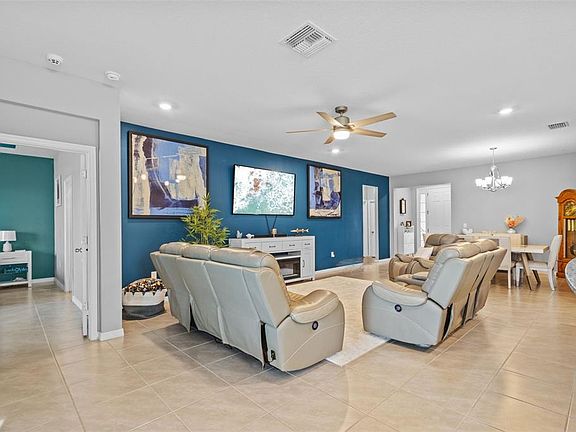 WHY WAIT for new construction when you can have it ALL—right now? SELLER OFFERING $10,000 towards BUYER'S CLOSING COSTS! Welcome to 11295 Timber Grove Ln, where luxury UPGRADES meet MOVE-IN READY perfection! This beautifully upgraded 3-bedroom, 2-bath home outshines neighboring new builds with features you simply won’t find included elsewhere. Step inside to WALL-TO-WALL tile flooring, FRESH interior paint, UPGRADED MOEN FAUCETS, a sleek UNDER-MOUNT COMPOSITE GRANITE SINK, and stylish cabinet hardware throughout. The kitchen boasts a stunning backsplash and comes fully equipped—including a REFRIGERATOR—so you can start cooking from day one! Enjoy the outdoors in your FULLY FENCED YARD, relax in the SCREENED-IN BACK PATIO, and appreciate thoughtful touches like GUTTERS, CUSTOM BLINDS on the slider, exterior lighting, and a GARAGE DOOR OPENER with PULL-DOWN ATTIC STAIRS for added storage. Every bedroom and main living space includes ceiling fans for comfort, and a chandelier in the dining area adds a touch of elegance. Other bonuses? A WATER SOFTENER SYSTEM, added privacy, and upgrades already DONE—saving you both time and money. Located just minutes from shopping, dining, medical centers, and the Gulf Coast’s famous beaches, this home offers the best of both comfort and convenience. Plus, get ready to enjoy a vibrant lifestyle with exciting upcoming community amenities, including a state-of-the-art clubhouse, resort-style pool, modern fitness center, dog park, playground, and pickleball courts—designed for fun, wellness, and connection. Don’t settle for builder-basic when you can have all the EXTRAS included. Schedule your tour today and experience the difference at Timber Grove!