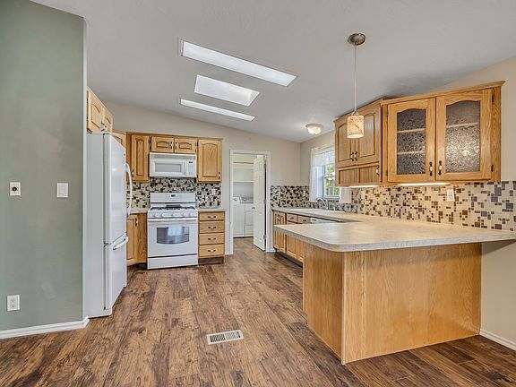 1994 Double Wide in Crescentwood Village All-Age Community Spacious 1,800 sq ft 3 BD / 2 BA home with a large covered deck and plenty of updates! New windows, central air, and forced heat for year-round comfort. 2020 new HVAC and water heater. Fresh paint throughout. Flooring includes vinyl, tile, and carpet. Kitchen features gas stove, built-in dishwasher, and refrigerator. Washer & dryer included. Primary suite with his-and-hers closets, separate tub and shower. Enjoy 3 covered parking spaces and a large storage shed with workbench. Excludes large freezer. Move-in ready and located in the desirable Crescentwood Village all-age community! Lot fee is $1114 plus w,s,t