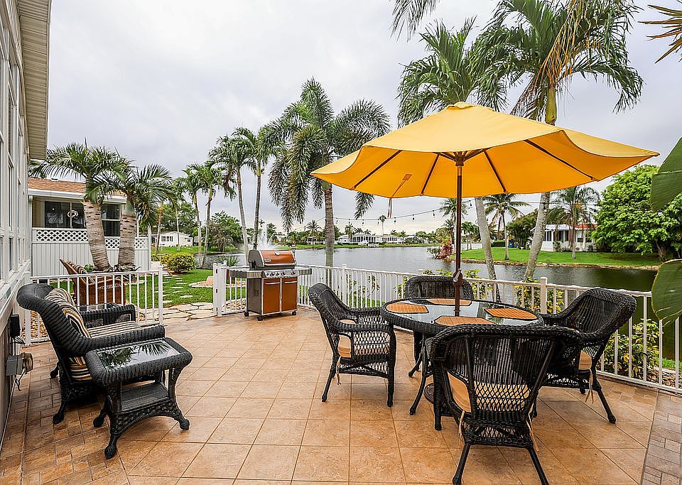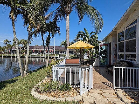 **HOME IS IN LAND LEASE COMMUNITY. NO REALTORS PLEASE.** ----------------------------------------------------------------------------------------------------------- WHARFVIEW LANDING – LUXURY LAKEFRONT LIVING! Nestled in one of the most coveted locations in Rexmere Village, Wharfview Landing is a breathtaking 3-bedroom, 2-bath lakefront home just steps from the lovely Wharf Club with its resort-style amenities. Enjoy sweeping water views from multiple living areas and an expansive tiled terrace with an elegant iron rail border, surrounded by mature palm trees, tropical shrubs, and charming hardscaping featuring artistically arranged pebbles and stepping pavers—designed for ultimate outdoor enjoyment. Inside, the sunroom boasts a massive wall of windows overlooking the lake, paired with gorgeous ceramic tile for a bright and serene ambiance. The home continues to impress with real wood flooring, elegant stone and ceramic finishes, and high-end upgrades throughout. The primary suite is a tranquil retreat, featuring French doors leading to a spa-like bath with artistic glass vessel sinks and a walk-in shower. A generously sized guest room with ceiling fan easily accommodates a queen bed, while a third room serves as the perfect home office or flex space. The open-concept design seamlessly connects a gourmet kitchen (appliances new in 2022) to a spacious dining area perfect for entertaining. Recent homeowner updates include a brand-new A/C (2024), roof (2020), and water heater (2018). A huge shed with a garage door provides endless possibilities—a workshop, extra storage, or even a golf cart garage. The beautifully tiled driveway extends the outdoor living space under the carport, offering yet another inviting area to relax and unwind. Like all homes in this stunning lakeside community, you’ll enjoy central air and heat, off-street covered parking, your own outdoor storage shed, professional landscaping with a sprinkler system, and access to the community’s extensive recreational amenities. Rexmere Village offers a heated pool complex, a brand-new fitness center overlooking the lake, tennis and basketball courts, a clubhouse, sauna, relaxation room, and lakeside recreation. This home is truly a rare find and must be seen to be fully appreciated! To schedule a tour of this spectacular home, contact Nidia Thwaites at (954) 417-0343. **HOME IS IN LAND LEASE COMMUNITY. NO REALTORS PLEASE.**
