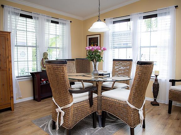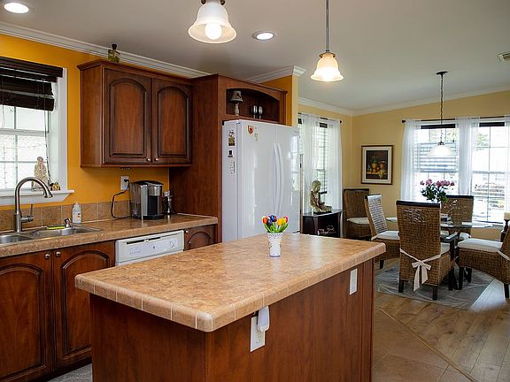 **HOME IS IN LAND LEASE COMMUNITY. NO REALTORS PLEASE.** ------------------------------------------------------------------------------------------------------ "Sunset Breeze" is an impressive residence combining practicality and charm. Situated on a generous corner lot in the premier community of Rexmere Village, this home offers an excellent location near the Wharf Club & Lake, providing many opportunities for recreation, relaxation, and picturesque scenery. The property is equipped with hurricane shutters and a generator for peace of mind and comfort. The charming front porch is the perfect spot to enjoy mornings, while the surrounding trees create a serene and peaceful atmosphere. Inside, the open layout seamlessly connects the kitchen, living room, and dining area, fostering a sense of togetherness and spaciousness. The combination of hardwood laminate and ceramic tile flooring adds elegance and ensures easy cleaning and maintenance. The kitchen boasts new appliances and features a convenient center island, perfect for meal preparation and casual dining. Storage space is abundant with numerous cabinets in the kitchen, helping to maintain an organized and clutter-free space. The master bedroom features a ceiling fan for added comfort and an en suite bath, creating an ideal space for relaxation, rest and rejuvenation.. This home comes with a washer and dryer and a generator (rare!) included in the price. Finally, like all homes in this lovely lakeside community, you will enjoy central air and heat, off-street covered parking, your own outdoor storage shed, professional landscaping and sprinkler system, and access to the community's extensive recreational amenities including enormous heated pool complex, new fitness center overlooking the pool and lake, tennis, basketball, clubhouse, sauna, relaxation room, lake recreation and more. To schedule a tour of this lovely home, contact Nidia Thwaites, listing agent, at (954) 417-0343. Ask for "Sunset Breeze", 4/8-PL. HOME IS IN LAND LEASE COMMUNITY. NO REALTORS PLEASE.