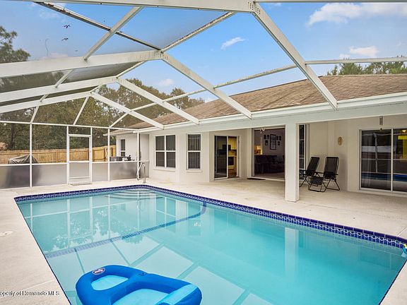 Beautiful Artistic built 3/2/2 pool home situated on almost an acre. Heated pool. Great floorplan, split bedrooms, triple pocket sliders to pool from living room. Conveniently located close to Oak Hill Hospital, shopping and restaurants.