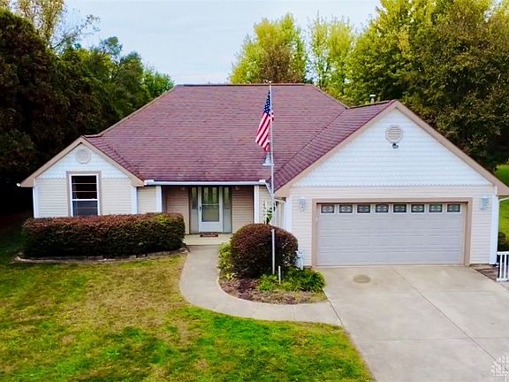 Welcome to your peaceful country retreat across from Sugar Isle Golf Course! This charming 3-bedroom, 2-bath ranch offers low-maintenance living with no steps and a convenient single-level layout built in 2003. Nestled just outside city limits, this home features an inviting open floor plan with vaulted ceilings in the spacious living room and abundant natural light. The kitchen offers ample cabinetry and counter space, perfect for everyday meals. Enjoy your morning coffee on the front porch with views of the golf course or relax & bird watch on the back patio surrounded by mature trees. Additional highlights include a 2-car attached garage, wide concrete driveway and easy-care vinyl siding. The setting provides a perfect balance of tranquility and accessibility—just minutes from Arrow Queen. If you’ve been looking for a move-in ready ranch with no stairs in a serene country setting, this is the one!