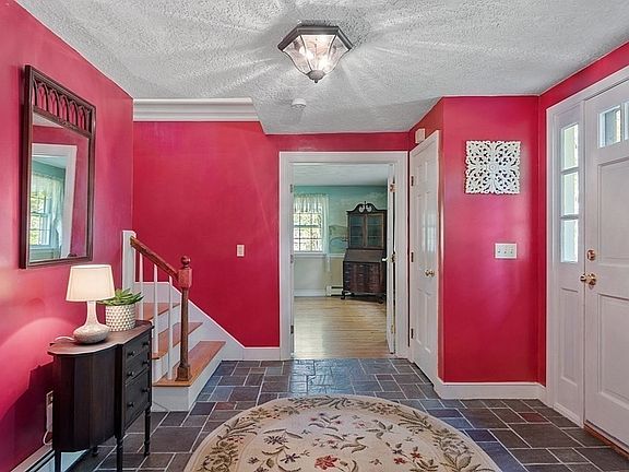 This handsome colonial, situated on a corner lot with its beautifully landscaped path, beckons you. The generous entryway leads you to a versatile floorplan. A charming home office with mural awaits on the first floor adjacent the dining room, both with HW floors. Prepare to craft up tasty meals in the sprawling kitchen with gas stove, two ovens, granite counters, maple cabinets & pantry. Cathedral ceilings, wood beams, & a gorgeous fireplace make the living room the perfect spot for entertaining or cozying up on the couch. Picture evening meals on the back sunroom, game nights or enjoying morning coffee with a pool view. Powder room on 1st floor with laundry could easily be converted into a full bath for first floor living. 3 spacious bedrooms w/HW floors & full bath upstairs plus primary with ensuite & walk in closet. More amazing space in the basement with another full bath & plenty of work/storage space. 1ST SHOWINGS @ OH SAT 10:30-12:30pm! Join us & witness what home feels like!