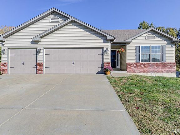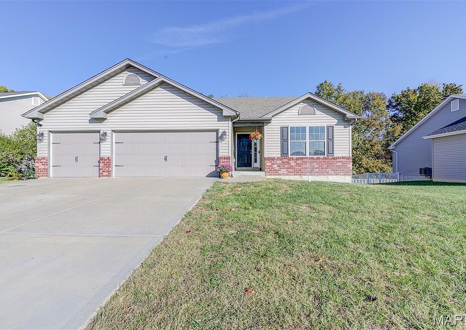 This stunning 3-bedroom, 2-bath walkout Ranch backs to woods and features a spacious 3-car garage, curb appeal with a half-brick front elevation, and a perfectly designed split-bedroom floor plan for added privacy. The home is upgraded to the max with granite countertops, custom cabinetry, stainless steel appliances, built-in microwave, electric range, brushed nickel hardware, and white panel doors. The vaulted great room and kitchen create an open, airy feel, complemented by an atrium bay window in the breakfast room. The luxury master suite includes a walk-in closet, garden tub, separate shower, and marble vanity. Additional features include: NEW flooring throughout the home with luxury vinyl plank in the kitchen, great room, foyer and both baths, all three bedrooms and stairs have NEW carpet, main floor laundry/mud room, vinyl insulated tilt-in windows, house wrap for energy efficiency, huge deck with stairs leading to patio area below, two frost-free exterior faucets, enclosed soffits and fascia, and. The walkout basement is ready to finish with a rough-in for a bath, and egress window for fourth bedroom. This is a premium lot backing to woods, the backyard is fully fenced, and it also has a large garden area just waiting for you. There are NO HOA fees here in Auburn Meadows. Hurry before it’s gone.